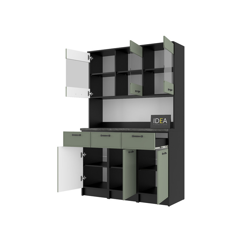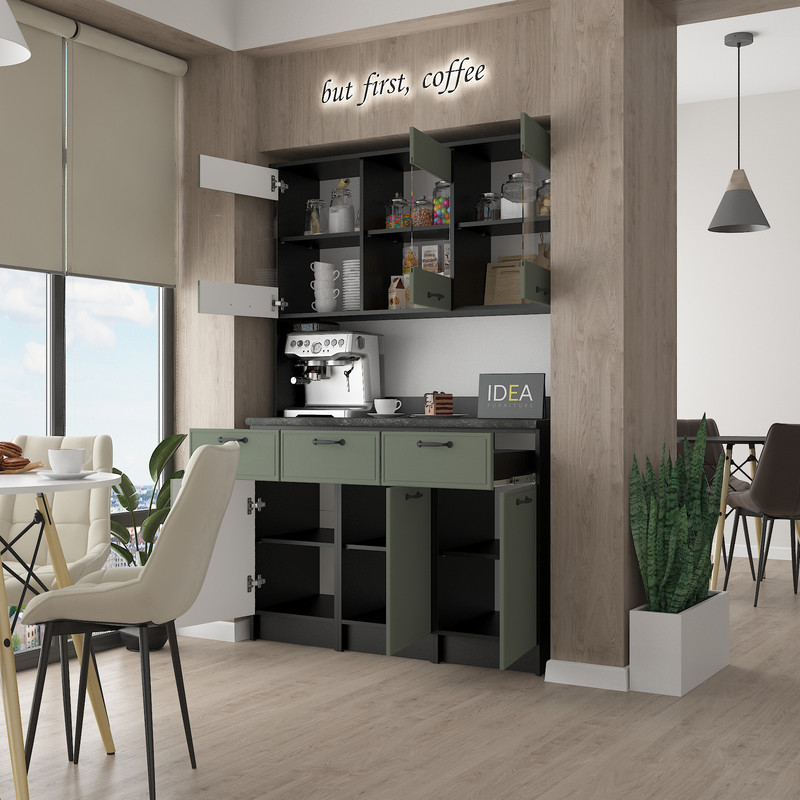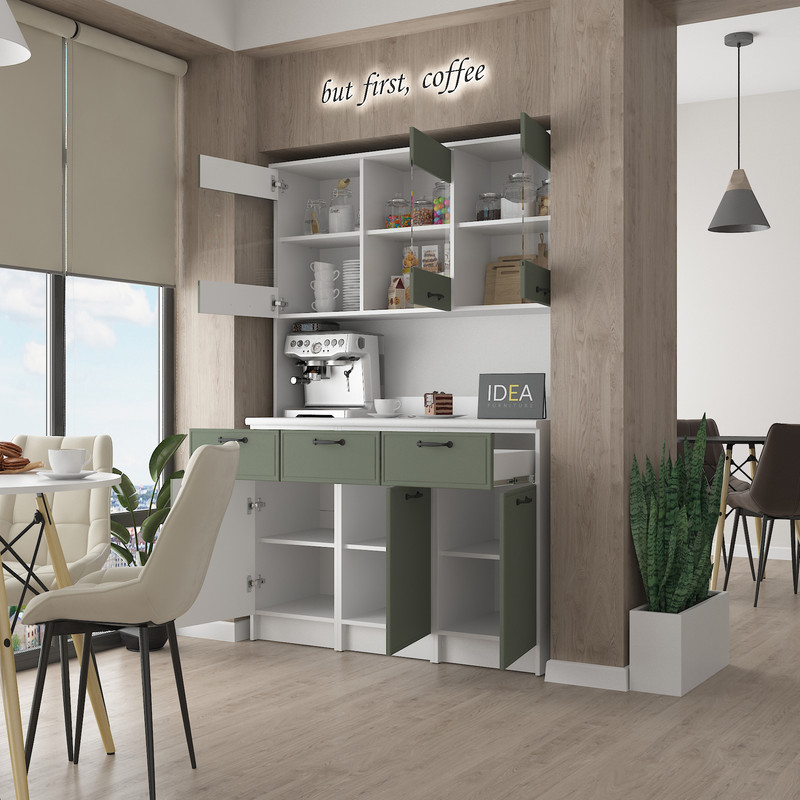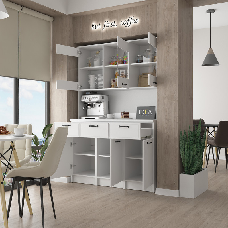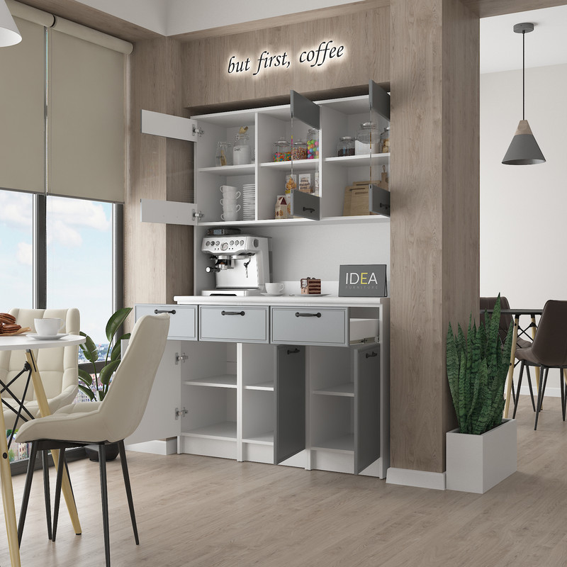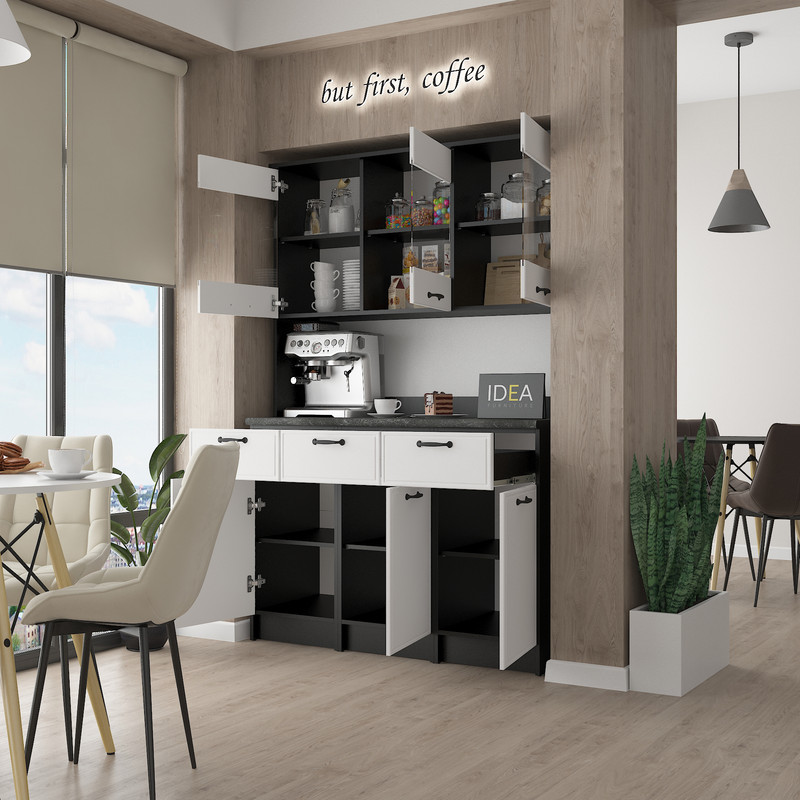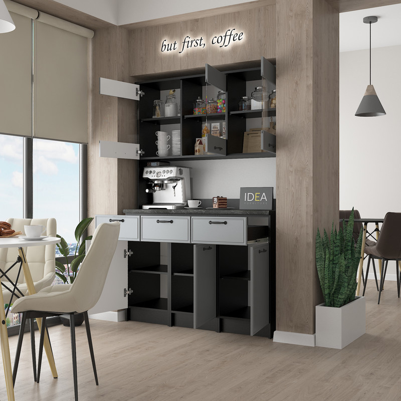 Модель IDEA К-92 завширшки 1200 мм — це ідеальне рішення для тих, кому потрібно максимум корисного простору без візуального нагромадження. Завдяки продуманій симетрії та використанню преміальних матеріалів, цей буфет стане головним помічником на вашій кухні.