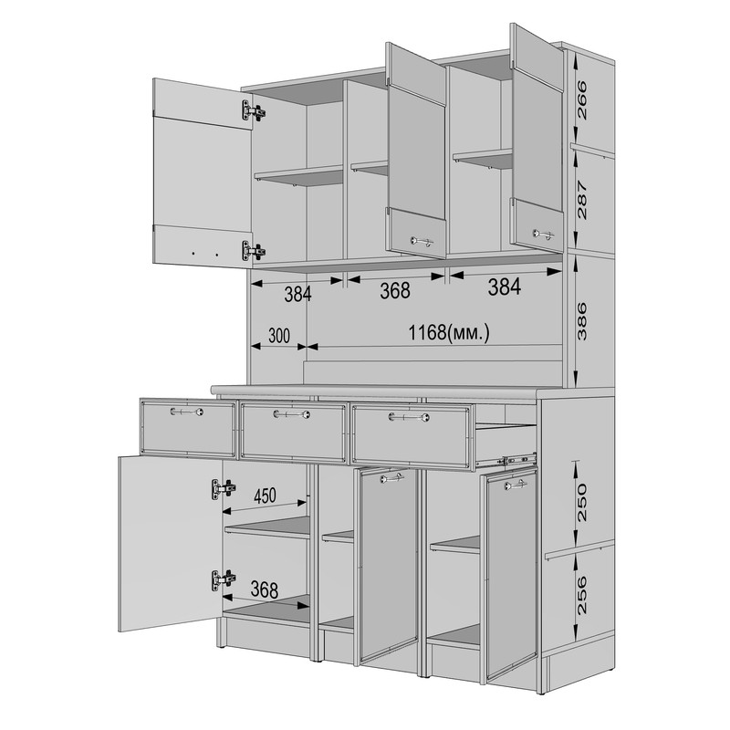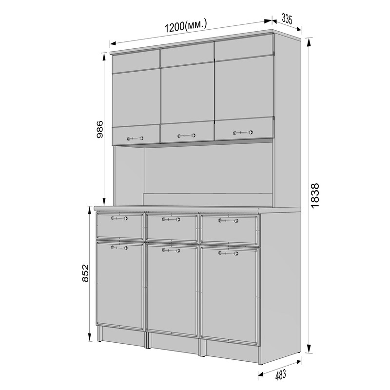 Нижня зона (3 тумби по 400 мм): Складається з трьох модулів.