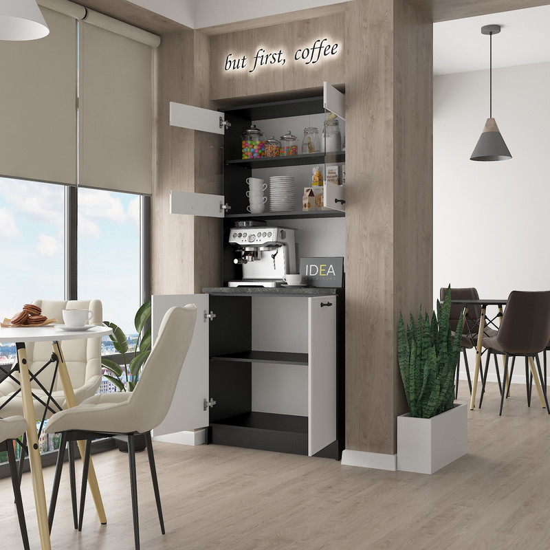 Відкрита центральна ніша: Спеціально створена для розміщення кавомашини, мікрохвильової печі або іншої дрібної техніки.