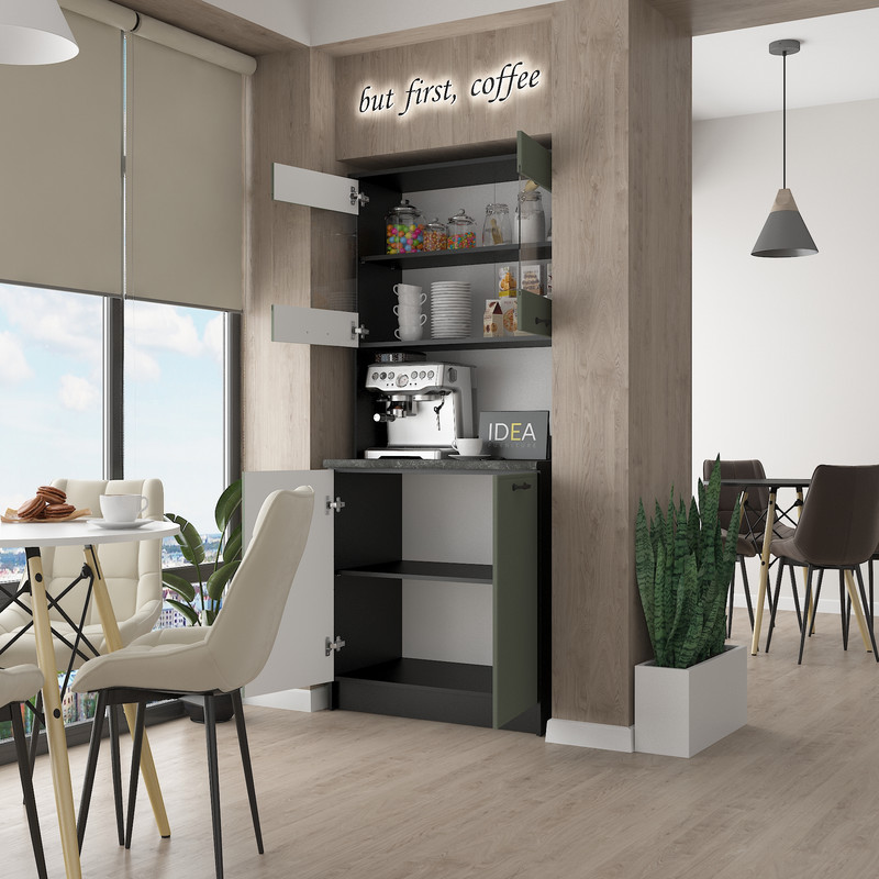 Шукаєте надійне та стильне рішення для організації кухонного простору? Буфет IDEA поєднує в собі сучасну естетику та високу зносостійкість завдяки використанню якісного МДФ та ДСП.