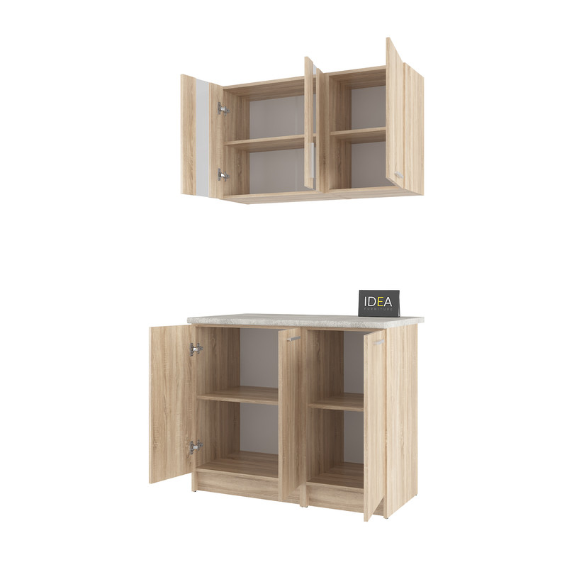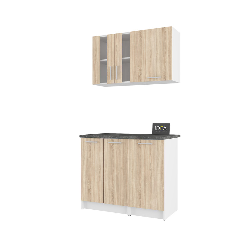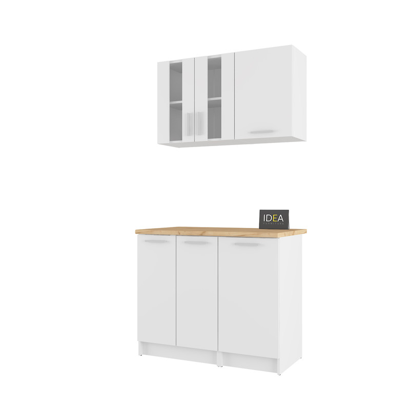 Кухонний гарнітур IDEA К-96 — це функціональне рішення для невеликих просторів, де кожен елемент працює на ваш комфорт. Завдяки продуманій комбінації закритих фасадів та скляної вітрини, кухня виглядає стильно та не захаращує інтер'єр.