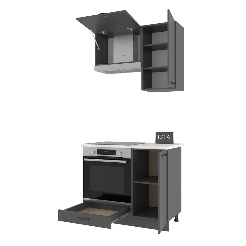 Кухонний гарнітур IDEA Н-22 — це максимально практичний вибір для невеликої кухні, офісу чи дачі. Модель дозволяє розмістити необхідну техніку та організувати зберігання на площі всього 100 см.