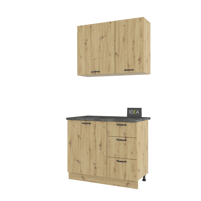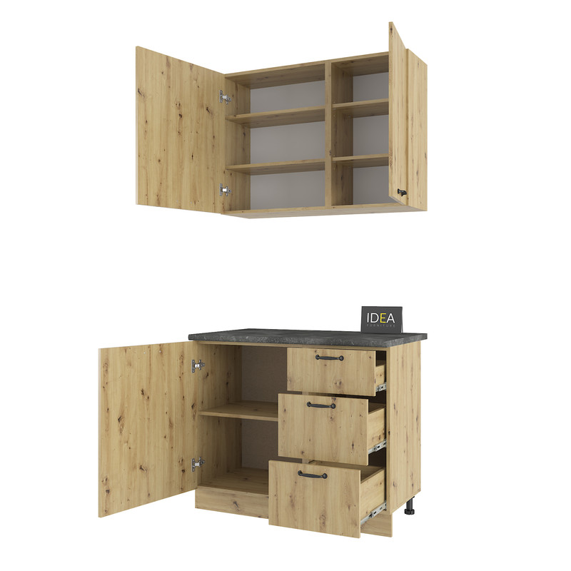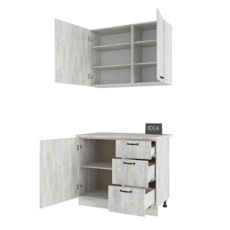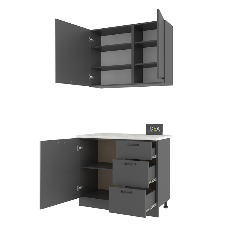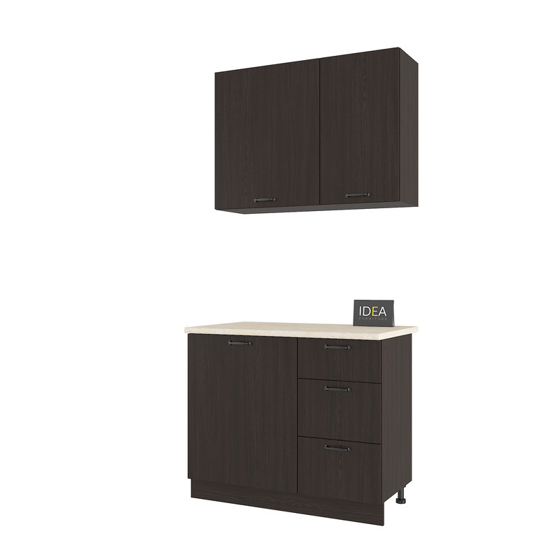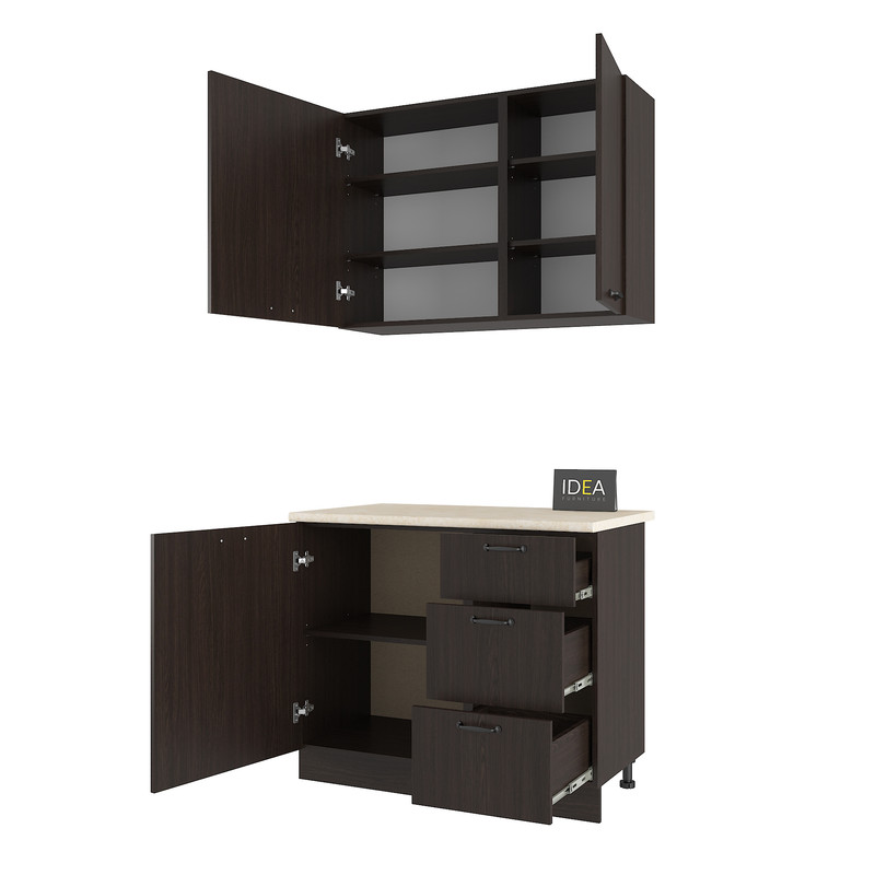 ухонний гарнітур IDEA Н-25 — це функціональне рішення для невеликих кухонь, де важливо поєднати зберігання великого посуду та дрібного інвентарю. Завдяки відсутності ніш під техніку, модель пропонує максимум корисної площі на 1 метрі ширини.
