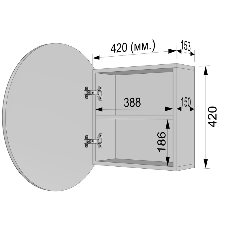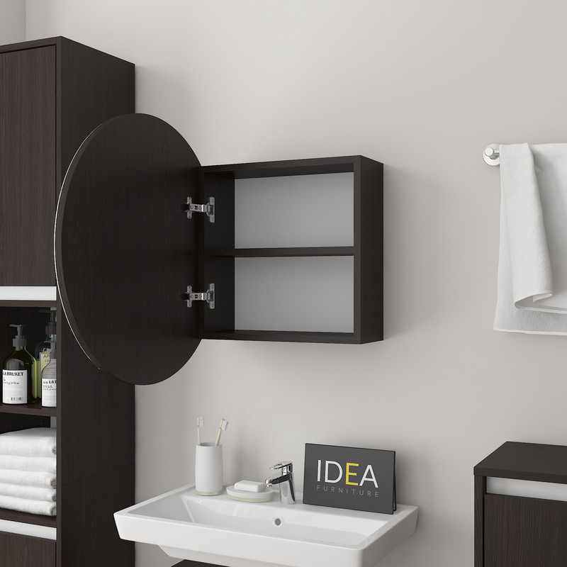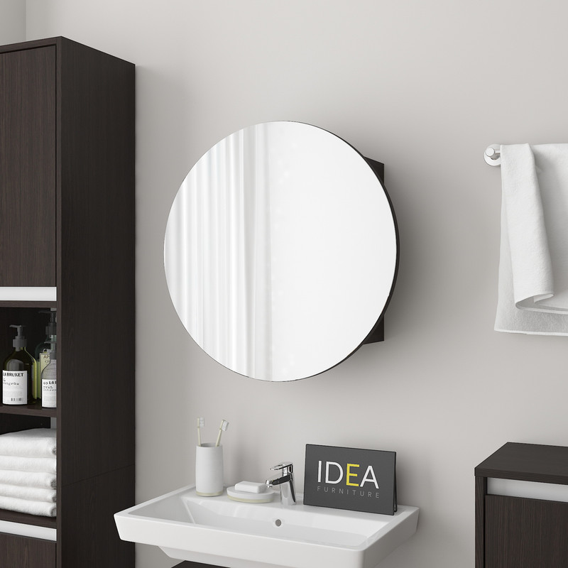 Дзеркало М-26 має сучасну круглу форму та поєднує естетику з функціональністю. Завдяки відкидній конструкції воно відкривається, а всередині розташована поличка для зберігання дрібних речей. Це ідеальне рішення для передпокою, ванної кімнати чи спальні, де важливо зекономити простір.