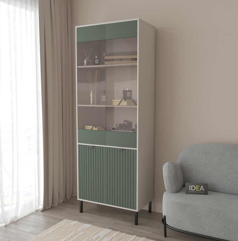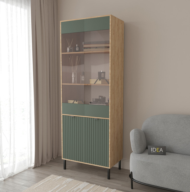 • Усередині: 2 скляні полиці у вітрині, 1 закрите відділення внизу