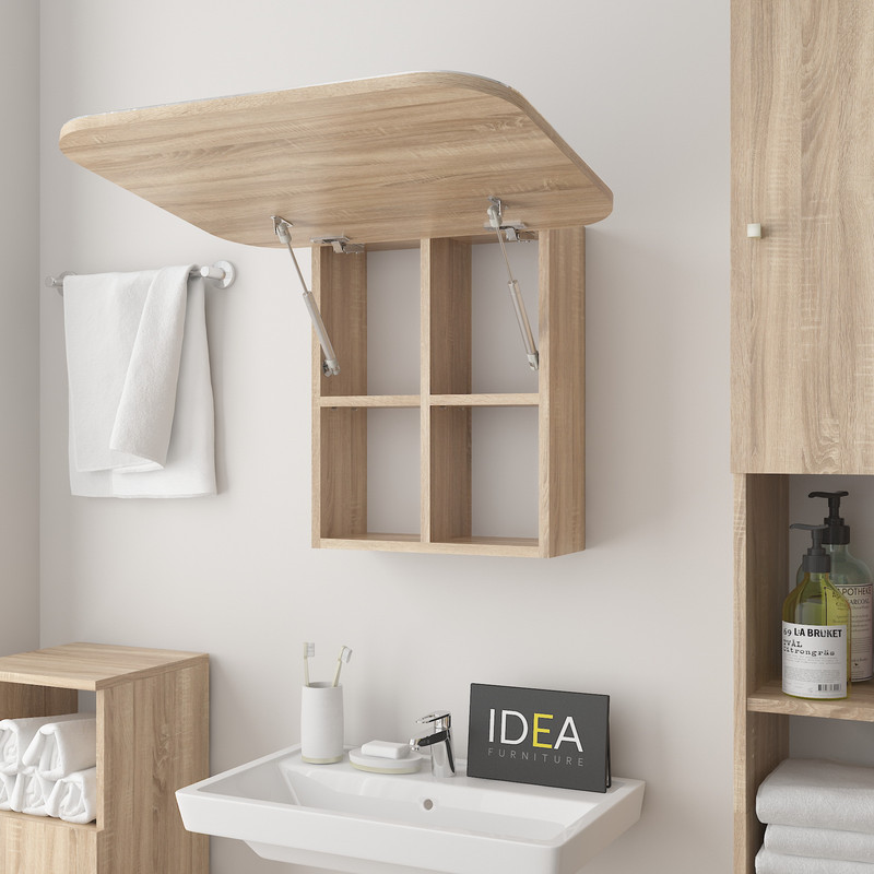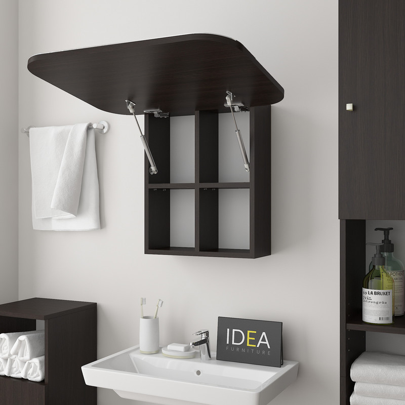 • Функціональність — фасад можна відкривати як вгору, так і вбік, всередині поличка для зберігання