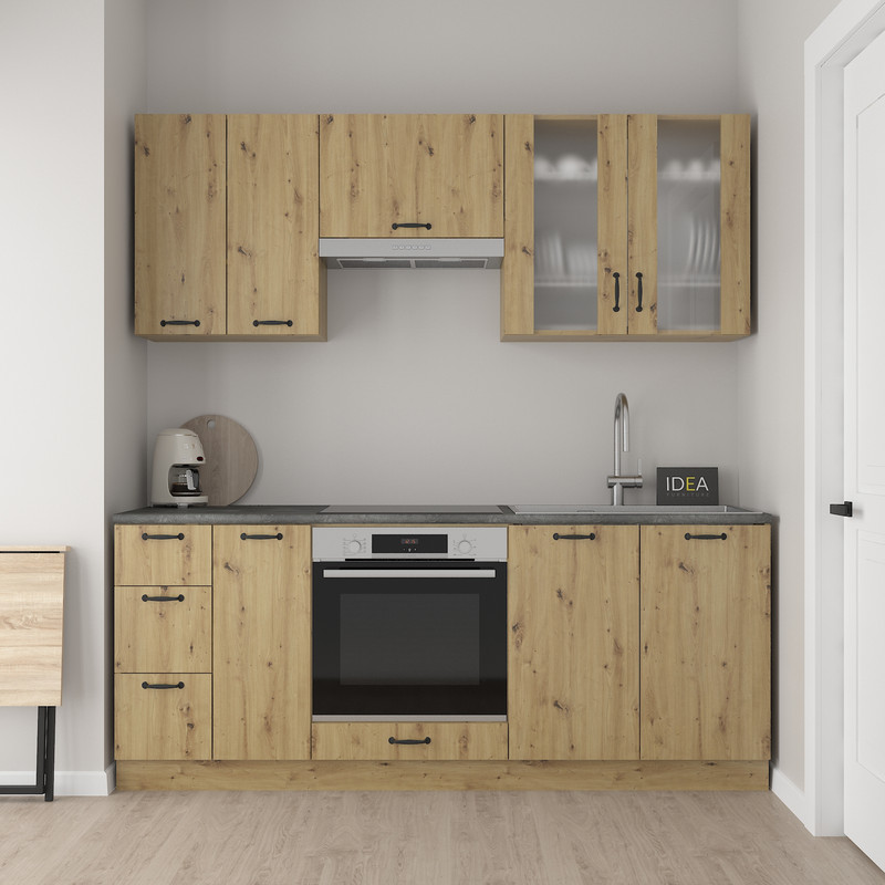 Підійде для розташування над стільницею або робочою зоною. Допоможе зручно зберігати посуд, контейнери чи запаси продуктів. Усередині розміщені полиці.