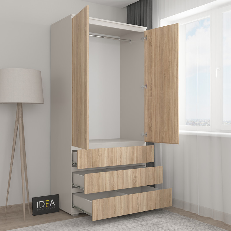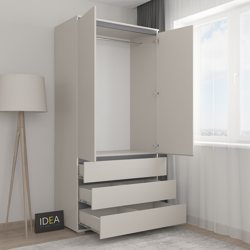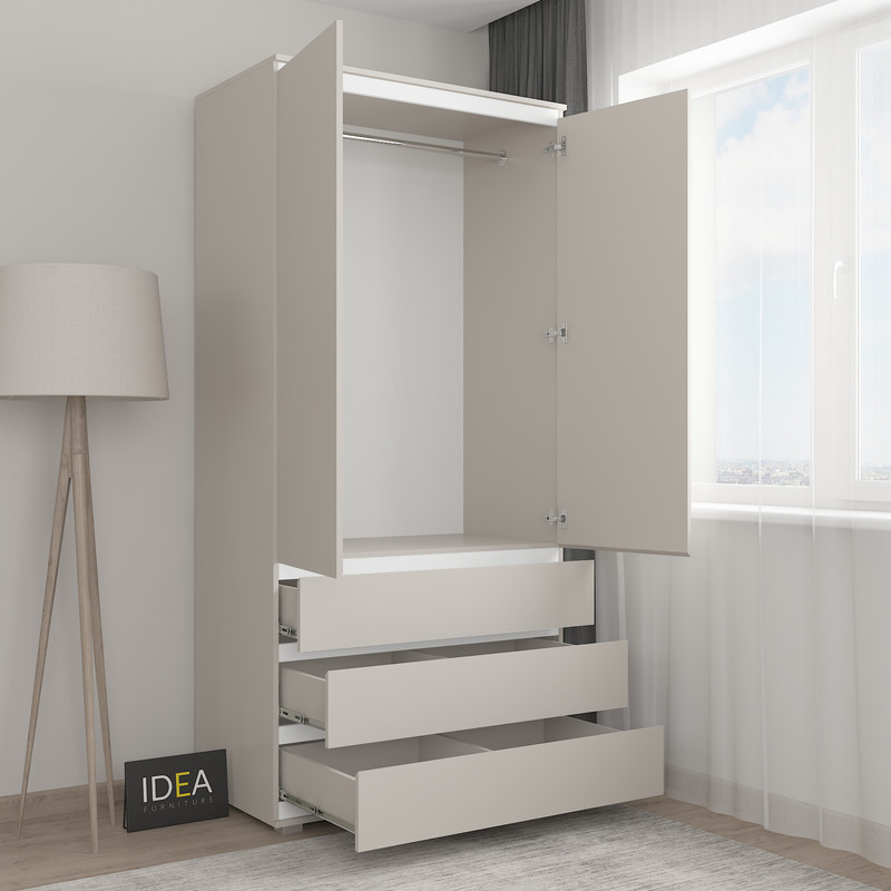 Всередині: штанга під одяг, 3 ящика для зберігання.
