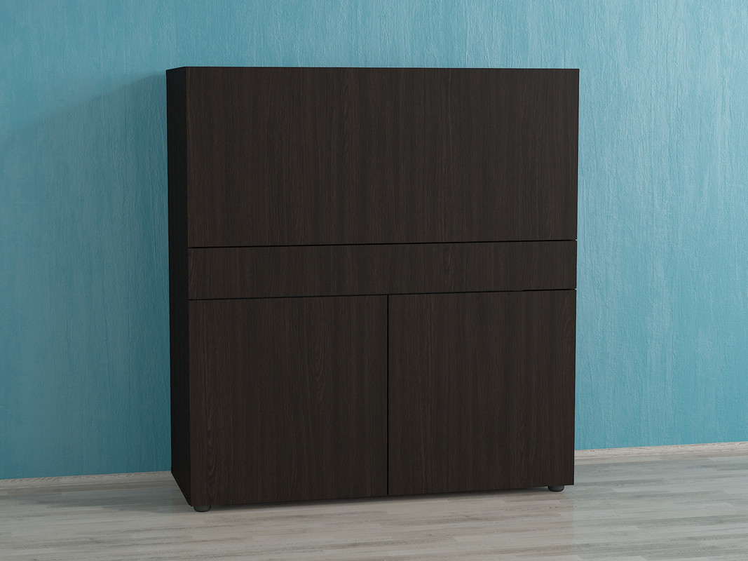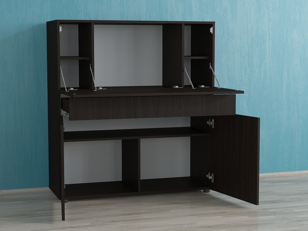 Закритий стіл з великою кількістю місця для зберігання з дверцятами, яка перетворюється в робочу поверхню.