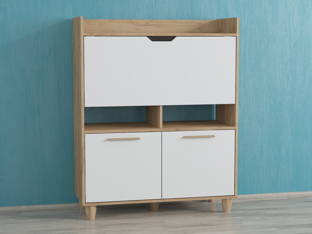 Закритий стіл з великою кількістю місця для зберігання з дверцятами за допомогою яких, перетворюється в робочу поверхню
