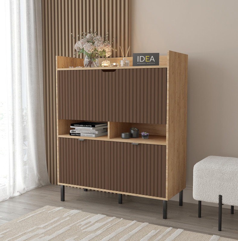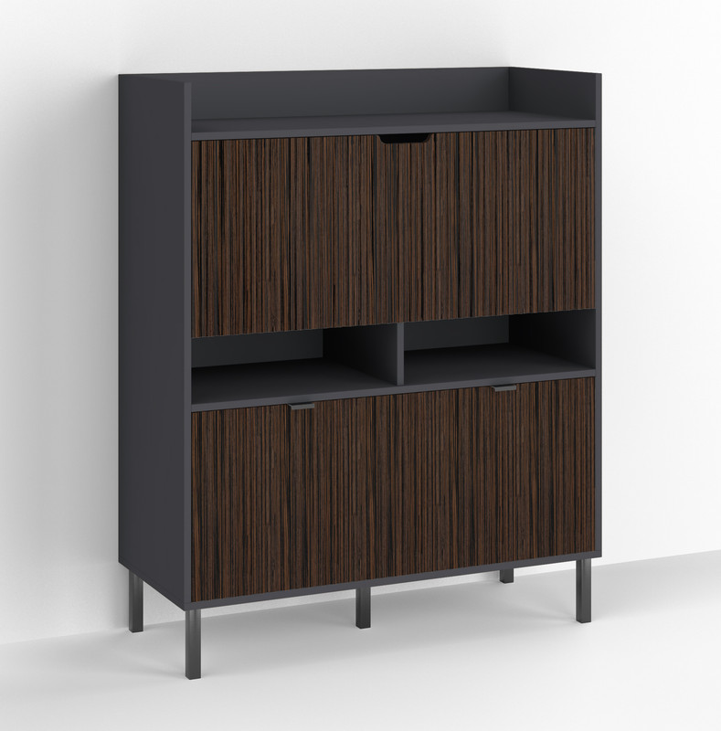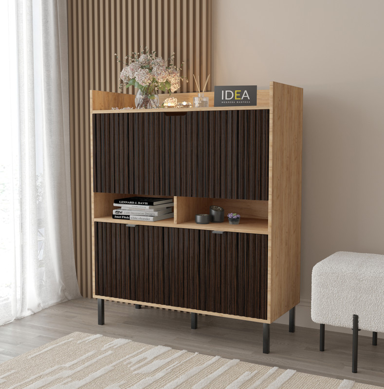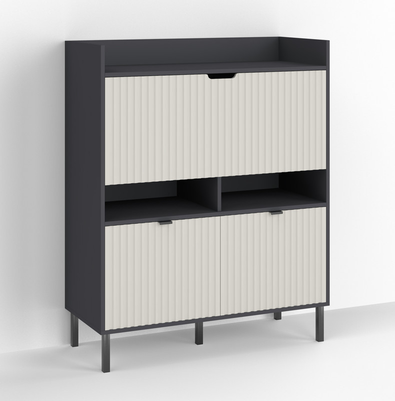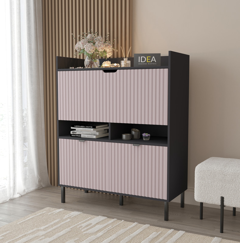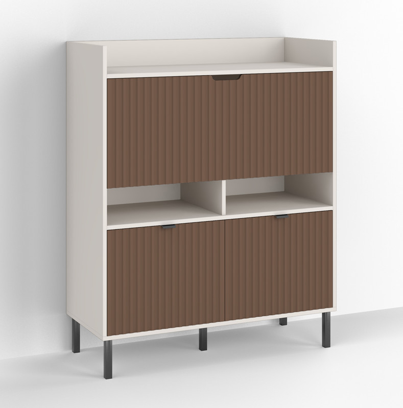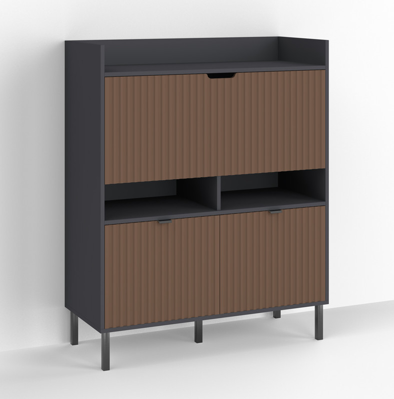 Стіл Трансформер П-4 – сучасне рішення для організації домашнього офісу в обмеженому просторі. В складеному вигляді він виглядає як стильна шафа з декоративними фасадами у полоску, виконаними у нових трендових кольорах. Завдяки простому механізму трансформації, дверцята легко перетворюються на повноцінну робочу поверхню для ноутбука, планшета або письма.