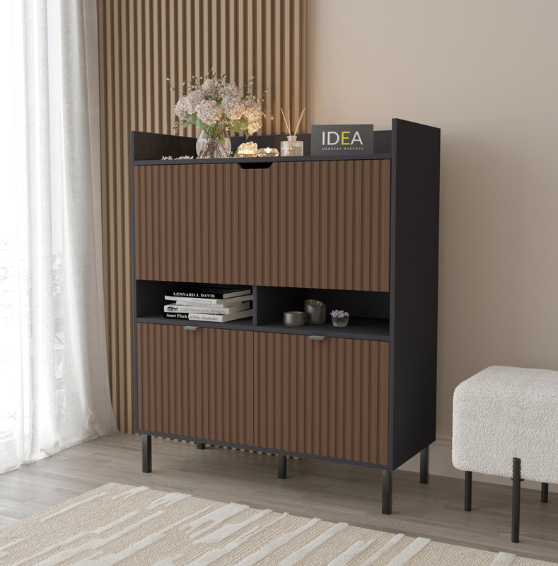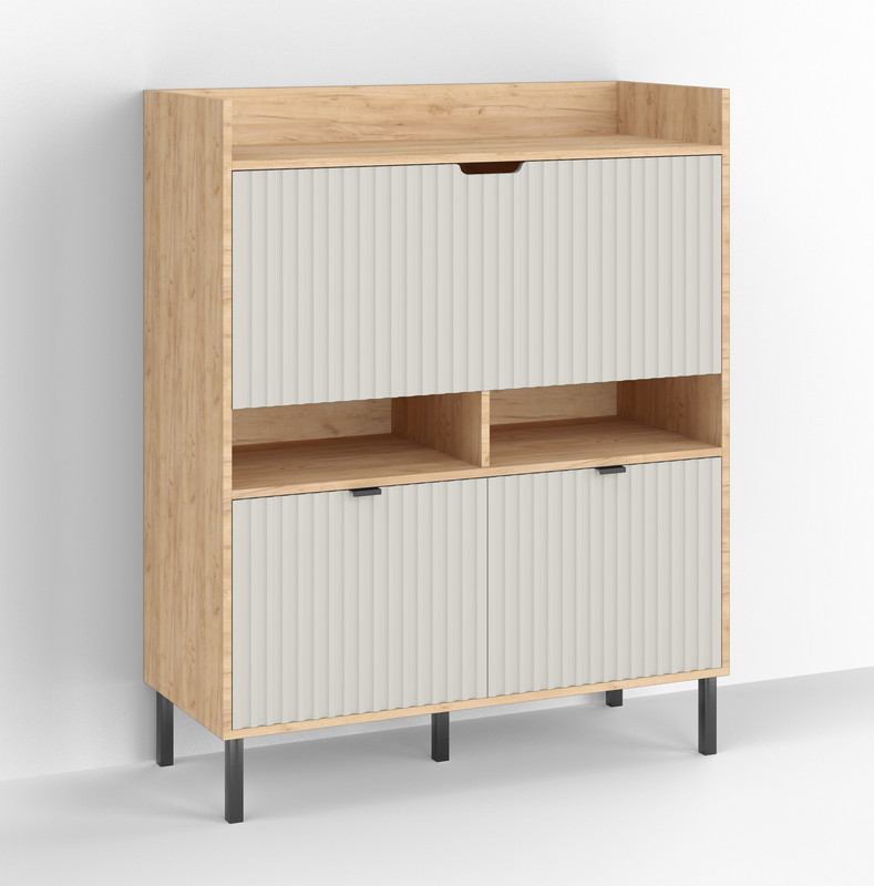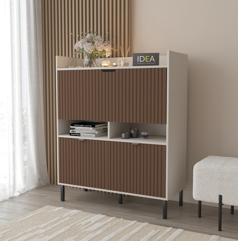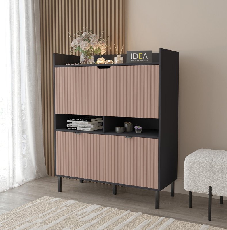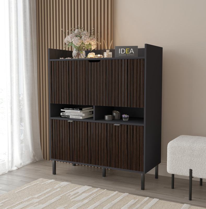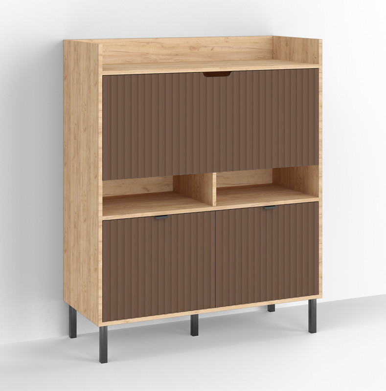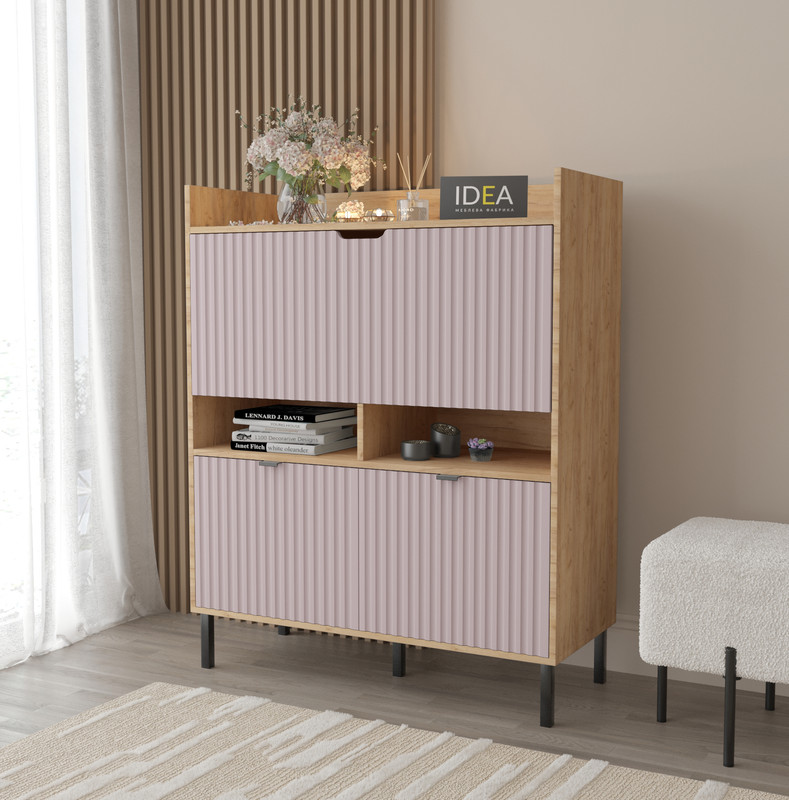 Стіл Трансформер П-4 – сучасне рішення для організації домашнього офісу в обмеженому просторі. В складеному вигляді він виглядає як стильна шафа з декоративними фасадами у полоску, виконаними у нових трендових кольорах. Завдяки простому механізму трансформації, дверцята легко перетворюються на повноцінну робочу поверхню для ноутбука, планшета або письма.