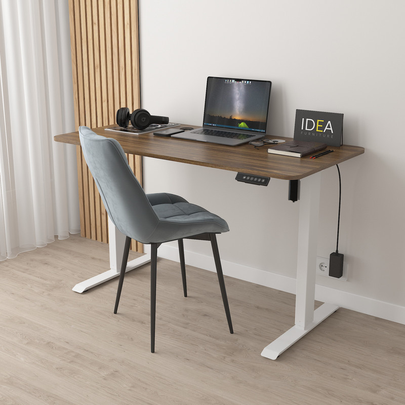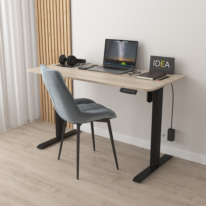 Стіл Е-1 — сучасний робочий стіл з електрорегулюванням висоти, створений для комфортної роботи вдома або в офісі. Завдяки електроприводу з плавним ходом стіл легко адаптується під зріст користувача, дозволяючи швидко змінювати положення з сидячого на стояче.