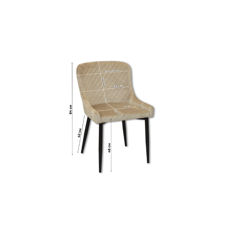 Стілець К-89 – елегантне та практичне доповнення до будь-якого сучасного інтер'єру. Оббитий приємним на дотик велюром, він забезпечує високий рівень комфорту під час сидіння. Стійкі чорні металеві ніжки надають виробу надійності та витонченого зовнішнього вигляду. Ідеально підходить для вітальні, робочого кабінету або зони відпочинку, додаючи простору вишуканості та стилю.