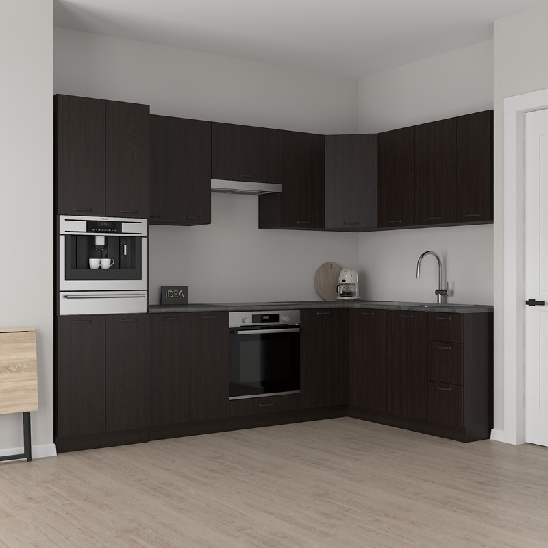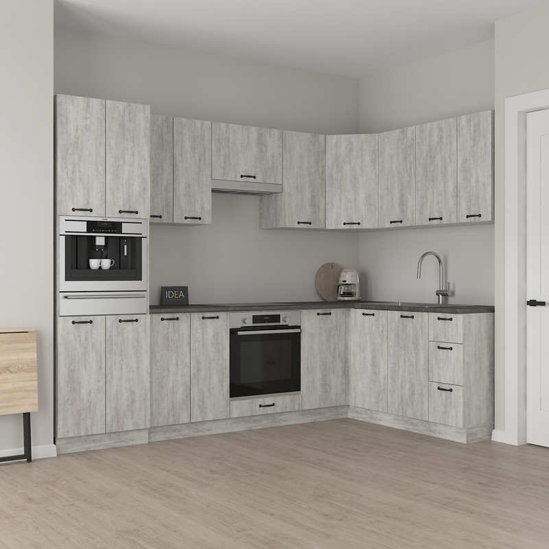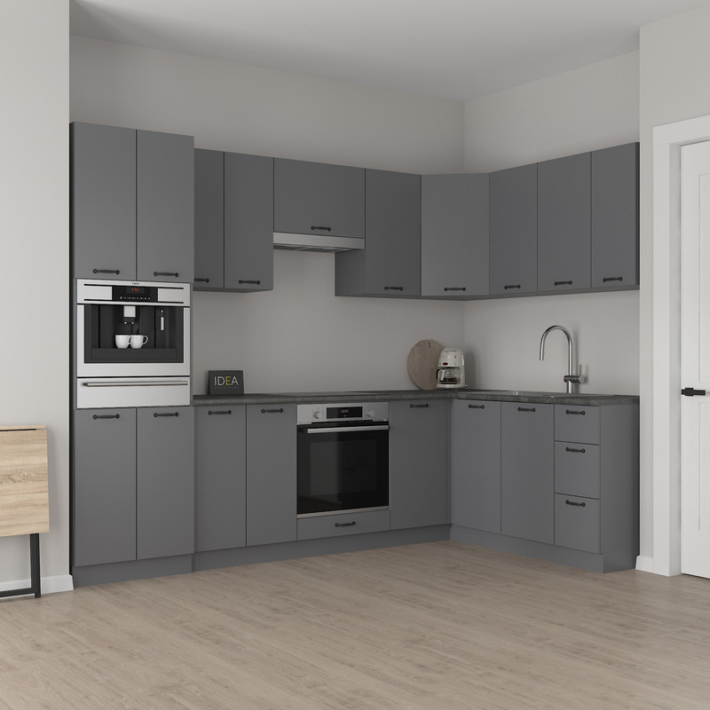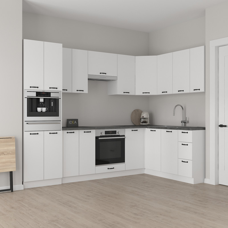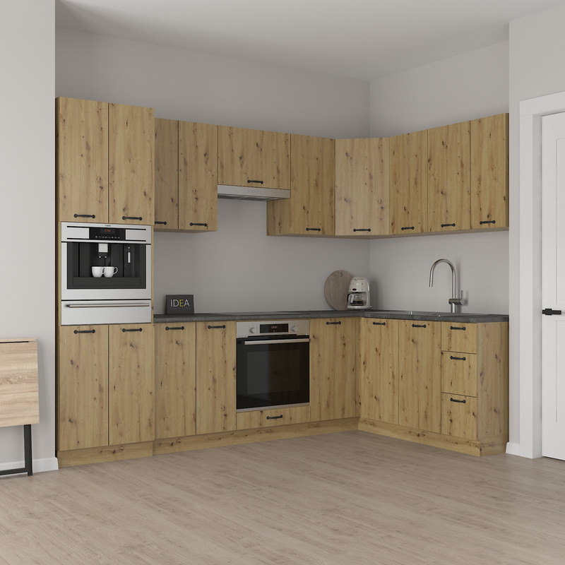 Містка приставна тумба шириною 880 мм — спеціально розроблена для ефективного завершення лінії нижніх кухонних модулів, формуючи зручний кут у плануванні кухні.