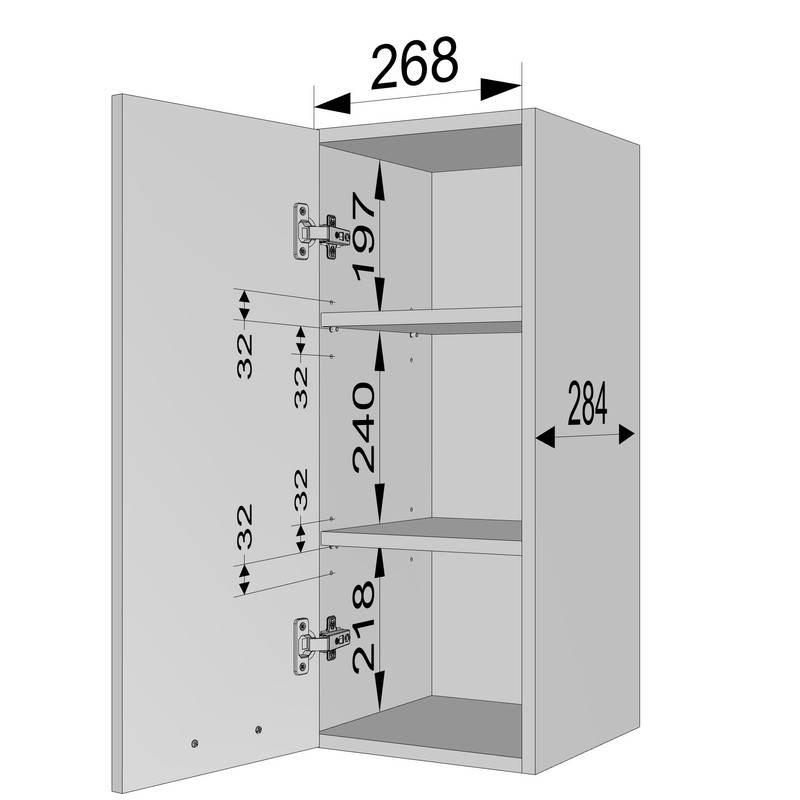 Навісна шафа Н-16 шириною 300 мм із двома поличками — це компактний і практичний елемент кухонного простору. Незважаючи на невелику ширину, ця шафа забезпечує достатньо місця для зберігання невеликого посуду, приправ або іншого кухонного приладдя. Дві полички дозволяють розподілити вміст на окремі рівні, що допомагає підтримувати порядок і зручний доступ. Шафа має простий та сучасний дизайн, який легко впишеться в будь-який інтер’єр кухні.